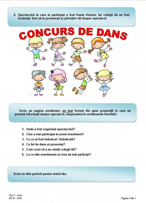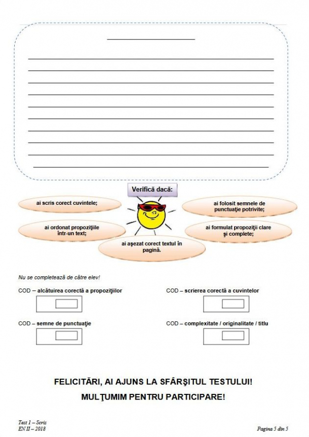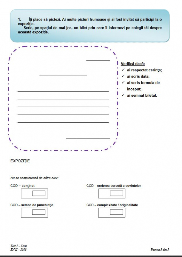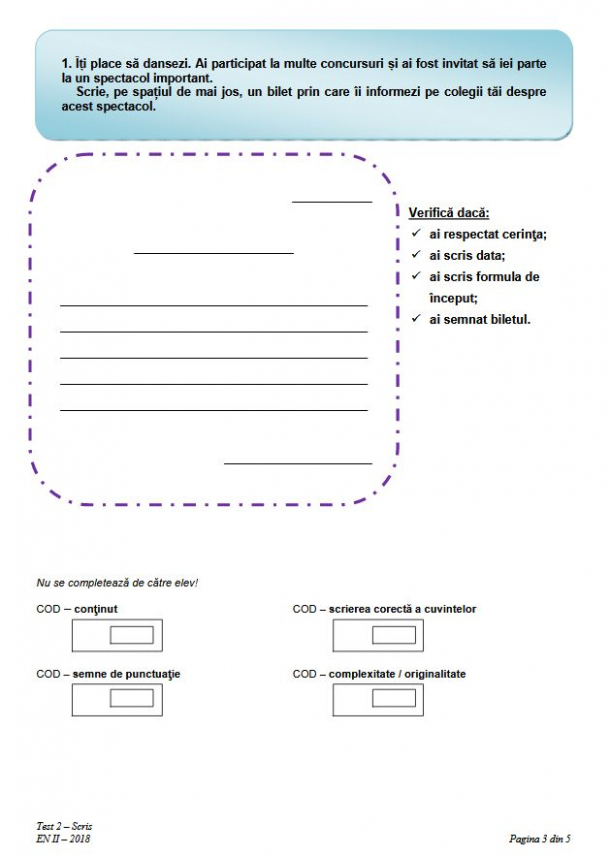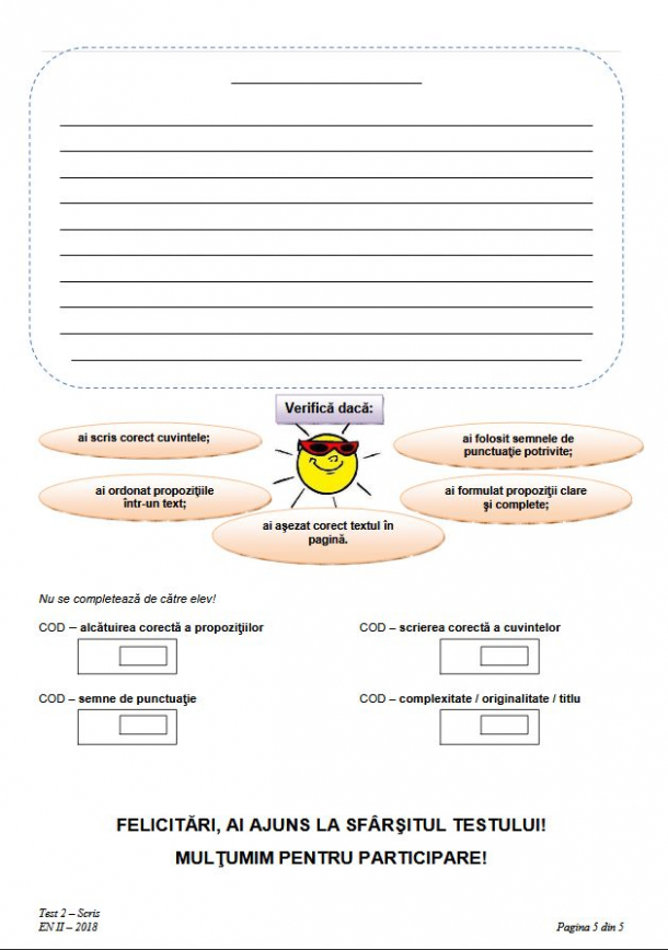 Subiecte Evaluare Națională 2018, clasa a II-a: Limba română – Scris