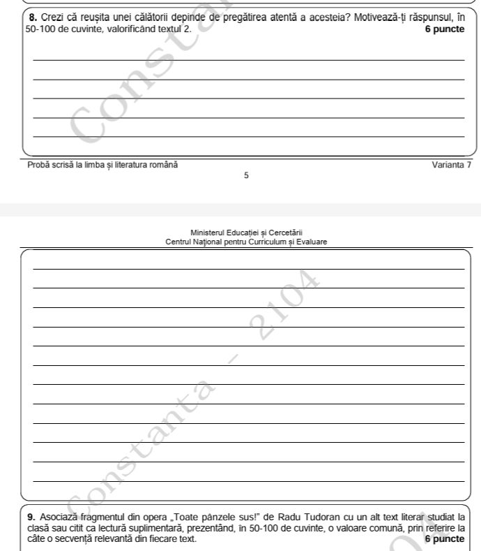 Elevii de clasa a VIII-a au susținut luni proba scrisă la Limba și literatura română din cadrul Evaluării Naționale.