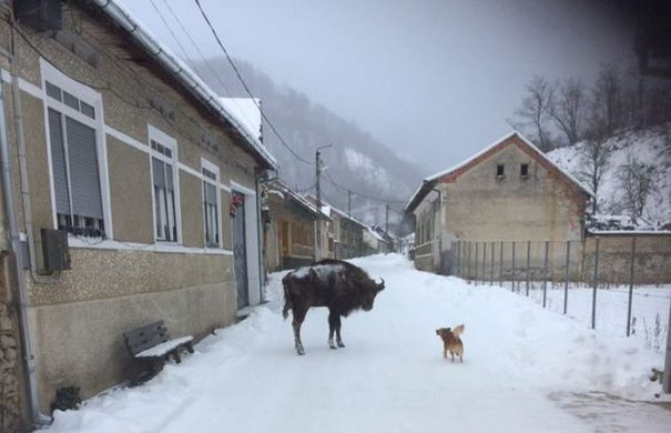 „De câteva săptămâni, pe uliţele satului Feneş, localnicii se întâlnesc pe uliţe cu un zimbru, pe care l-au şi hrănit în mai multe rânduri, motiv pentru care mamiferul a tot revenit în sat", au declarat reprezentanţii asociaţiei WWF-România, care a reintrodus zimbrii în sălbăticie, în Munţii Ţarcu.