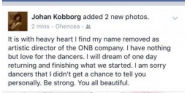 În semn de solidaritate față de Johan Kobborg, balerinii Operei Naționale au hotărât să înceteze orice fel de activitate.