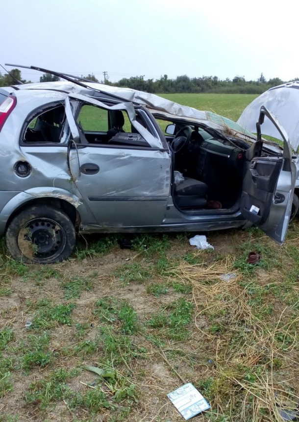 În urma accidentului, maşina a fost proiectată câţiva metri, pe câmp.