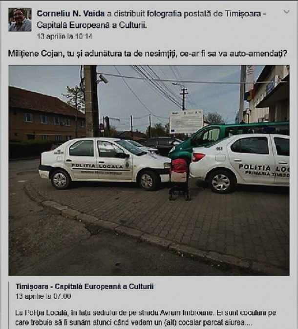 În descrierea imaginii distribuite, Corneliu Vaida a scris „Milițiene Cojan, tu și adunătura ta de nesimțiți, ce-ar fi să vă auto-amendați?”.
