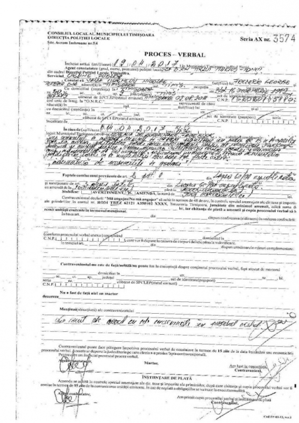 Timișoreanul susține că nu va plăti amenda de 900 de lei și că va merge în instanță cu Poliția Locală Timișoara.