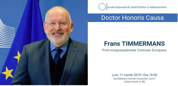 Prim-vicepreşedintele Comisiei Europene, Frans Tiimmermans, va veni luni, 11 martie, la Bucureşti pentru a participa la o ceremonie la Şcoala Naţională de Studii Politice şi Administrative (SNSPA) în care i se va acorda titlul de Doctor Honoris Causa.