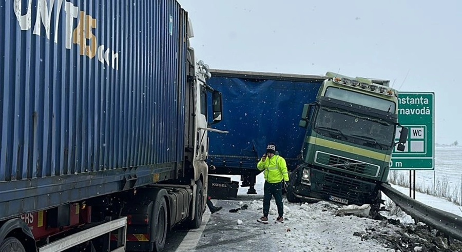 Circulația pe sensul București–Constanța a fost oprită după ce un TIR a derapat și a lovit parapetul median, rămânând imobilizat pe carosabil. Din cauza poziției autocamionului, banda de rulare a fost complet blocată, ceea ce a dus rapid la cozi kilometrice.