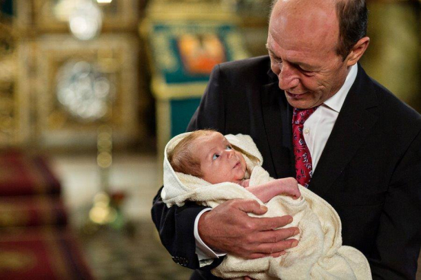 Traian Băsescu a publicat pe pagina sa de Facebook o poză de la botezul nepotului său, Radu. Ceremonia a avut loc sâmbătă la biserica Silvestru din Capitală. În fotografie, fostul şef al statului apare ţinându-şi nepoţelul în braţe.