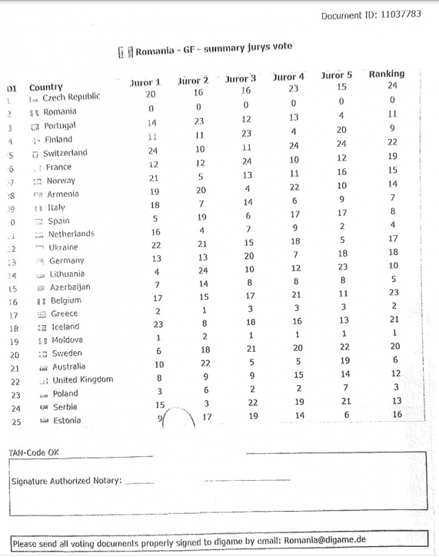 Astfel, România acordase în realitate următorul punctaj: