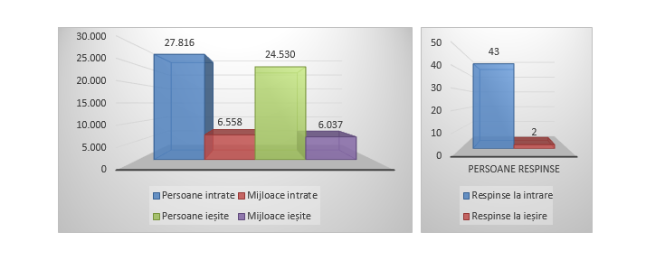 În urma controalelor efectuate, 43 cetățeni străini au fost respinși la intrarea în țară și pentru 2 cetățeni străini nu s-a permis ieșirea din țară.