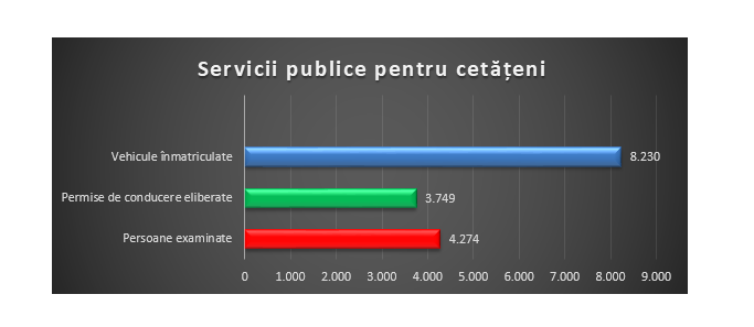 Au fost eliberate 3.749 de permise de conducere și au fost înmatriculate 8.230 de vehicule.
