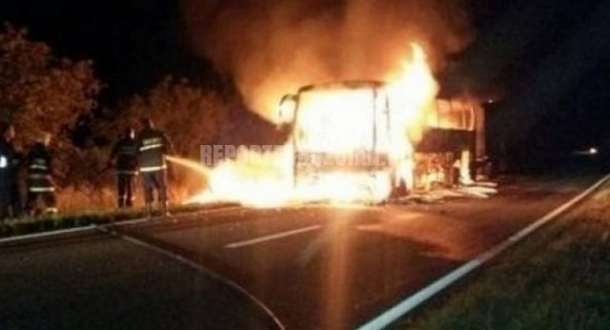 Cei 40 de pasageri din autocar au reuşit să se evacueze la timp, fără ca cineva să fie rănit, iar ulterior au fost preluați de un alt autocar.
