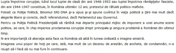 Acesta spune că binomul SRI-DNA și-a spus cuvântul în viața politică a țării mai mult decât alegerile, referendumul, Parlamentul sau Guvernul.