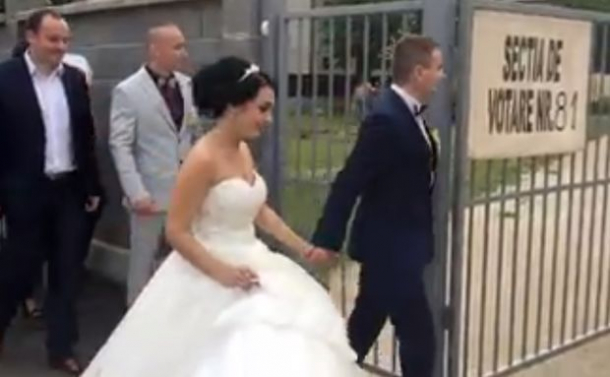 Doi tineri proaspăt căsătoriți au ales să fac un prim pas important în căsnicia lor, iar imediat după nuntă, cei doi au mers la o secție de votare pentru a-și exercita dreptul la vot.