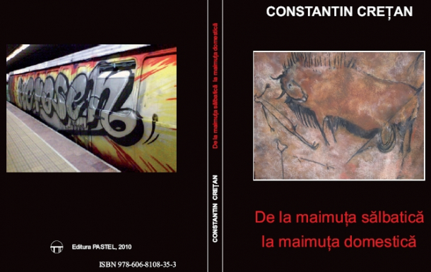 Coperta volumului „De la maimuța sălbatică la maimuța domestică”, publicat de Constantin Crețan în 2010![]()