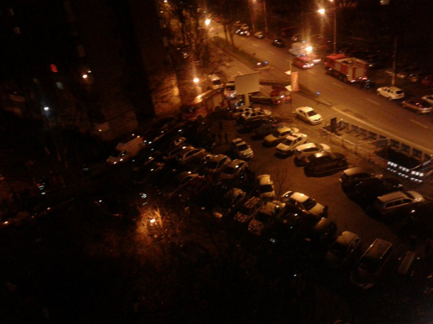 UPDATE: Ora 00:30 A fost ridicată o scară de pompieri, în încercarea de a o prelua. Câțiva pompieri au intrat în bloc, pe casa scărilor.