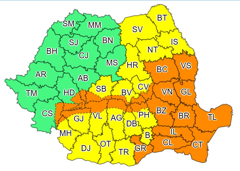 În Oltenia, Muntenia, Dobrogea, Moldova, precum și în sudul și estul Transilvaniei, se anunță condiții meteorologice dificile. Vor fi precipitații, sub formă de ninsoare la munte, iar în restul zonelor va ploua, urmate de ninsori treptate în noaptea de sâmbătă spre duminică (25/26 noiembrie). Cantitățile de apă vor ajunge la 25…35 l/mp.