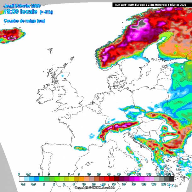 Modelarea indica viteze foarte mari ale vântului (de cod rosu) suprapuse pe ninsori ce pot fi importante cantitativ. Exista și o aliniere în predicția stratului de zăpadă ceea ce sugerează ca discutam de un viscol clasic de Baragan.