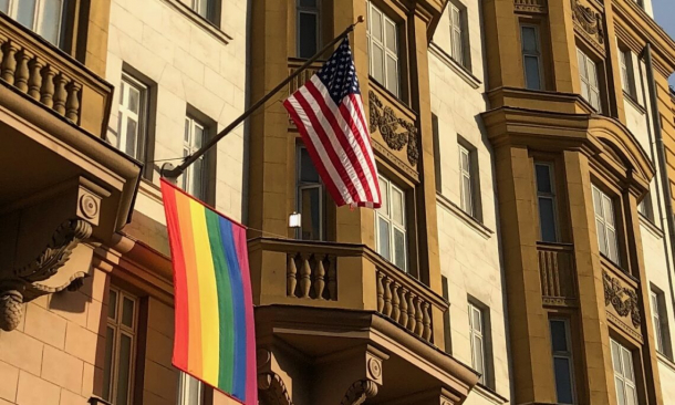 Ambasada SUA la Moscova arborează steagul LGBTI fix în ziua în care a început referendumul de interzicere în Rusia a căsătoriilor între homosexuali