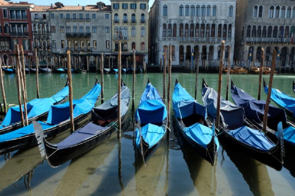 Odată cu încetinirea substanţială a a activităţii industriale din nordul Italiei, generată de epidemia de COVID-19, în canalele Veneţiei au putut fi văzute, după mult timp, apă curată, peşti, lebede şi chiar şi delfini.