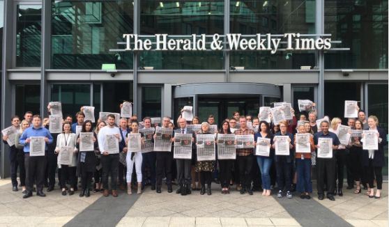 News Corp Australia și NineMastheads au publicat prima pagină cu text înnegrit și o ștampilă roșie cu mesajul „secrete”.