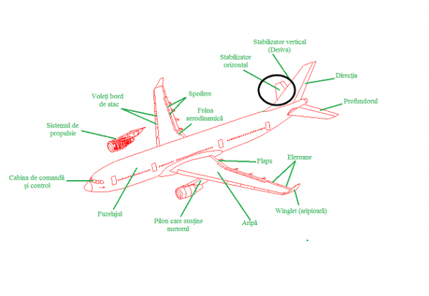 Foto: Localizarea stabilizatorului orizontal (sursă foto: infoaviatie.ro)