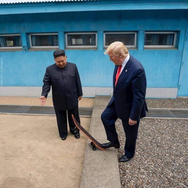 Foto: Momentul în care Donald Trump (dreapta) trece din Coreea de Sud în Coreea de Nord, la invitaţia liderului nord-coreean Kim Jong-un (sursăfoto: Facebook)