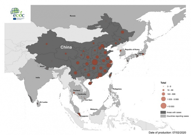 Foto: Distribuţia cazurilor înChina(sursă foto: European Center for Disease Prevention and Control (ECDC))