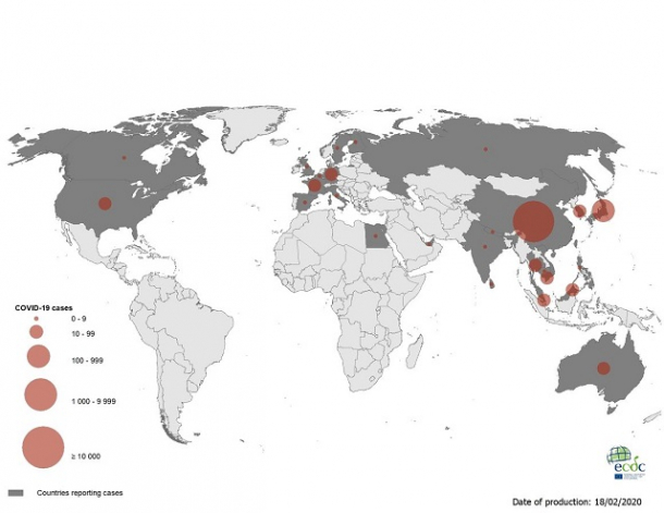 Foto: Distribuţia cazurilor la nivel global (sursă foto: European Center for Disease Prevention and Control (ECDC))