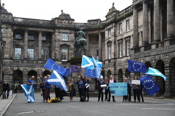 Foto: Oponenţi ai Brexitului aflașiîn faţa instanţei care a declarat ilegală decizia de suspendare a parlamentului (sursă foto: hepta.ro)