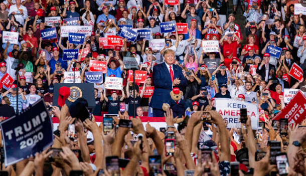 Foto: Donald Trump în timpul mitingului electoral din New Hampshire (sursa foto: Twitter / Donald Trump)