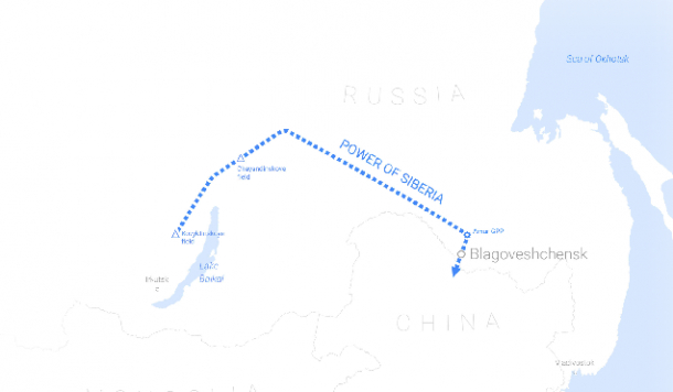 Dar şi Moscova pare să fie conştientă că o bună parte a veniturilor ei provin din Uniunea Europeană, demarând un proiect extrem de ambiţios care, pe termen lung, ar fi menit să schimbe această situaţie. Aici intră în rol construirea gazoductului lung de 3.000 de kilometri, „Puterea Siberiei„, care va face legătura între China şi Rusia şi va putea transporta (într-o primă fază), aproximativ 38 de miliarde de metri cubi de gaz pe an.