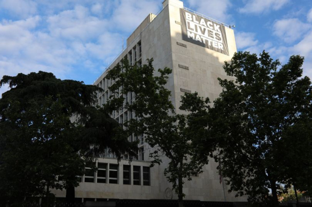 Trendul „Black Lives Matter” este departe de a dispărea. Ambasada SUA de la Madrid a arborat, marți, un banner BLM.