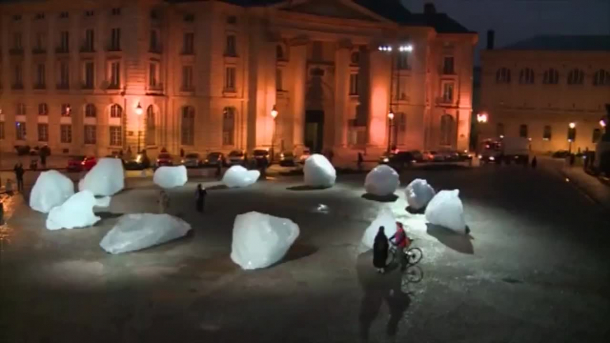 Blocuri de gheață aduse din Groenlanda, expuse la Paris