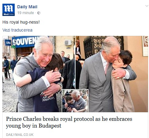 Bineînțeles, scena a fost filmată și a făcut înconjurul publicațiilor internaționale. Printre ele s-a numărat și Daily Mail, care, însă, s-a remarcat printr-o gafă. Jurnaliștii britanici de la această publicație au scris că Prințul Charles a trecut peste normele de protocol și a îmbrățișat un copil pe o stradă din Budapesta.
