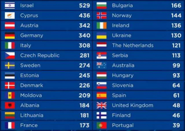 Pe locul doi a ieșit reprezentanta din Cipru, cântăreaţa originară din Grecia şi cu origini albaneze Eleni Foureiera (31 de ani), cu piesa „Fuego“, care a strâns 436 de puncte.