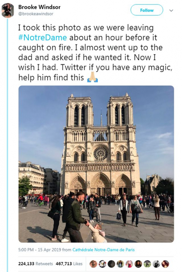Fotografia devenită VIRALĂ după incendiul de la Notre Dame: ‘Ajută-l să găsească asta!’ (FOTO)