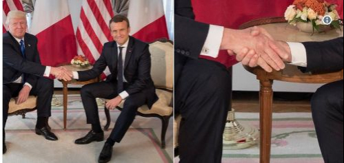 Strângerea de mână dintre Donald Trump și Emmanuel Macron