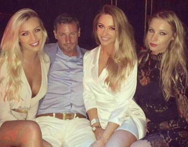 Comentatorul de fotbal Richard Keys, în vârsta de 61 de ani apare cupartenera lui Lucie Rose, de 28 de ani, în stânga, iar în dreapta cu fata lui Jemma,de 32 de ani.