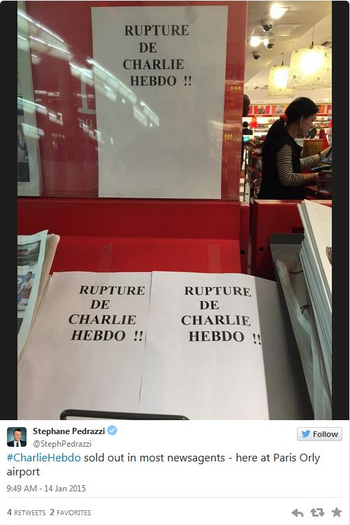 Tirajul final s-a ridicat la 5 milioane de copii, puse la vânzare atât în Franţa, cât şi în alte 25 de ţări. Un singur exemplar a fost cumpărat cu trei euro, iar profitul final va fi donat familiilor victimelor.