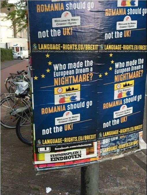 Mai multe postere prin care se sugerează faptul că România ar fi de vină pentru așa-zisă a destrămării Uniunii Europene au apărut în orașul olandez Eindhoven. Pozele cu aceste postere s-au răspândit cu repeziciune pe rețelele sociale, ceea ce a ridicat numeroase întrebări referitoare la poziția oficială a Olandei în această chestiune.