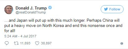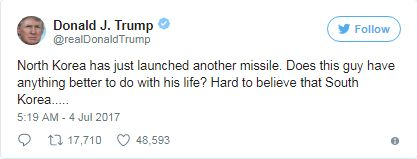 Donald Trump a avut o reacție imediată pe Twitter, unde s-a întrebat dacă președintele corean nu are ceva mai bun de făcut cu viața lui.