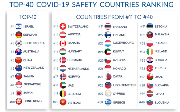Astfel, a fost întocmit un clasament al țărilor celor mai sigure în contextul pandemiei de COVID-19. Acestea au fost evaluate în funcție de criterii ca eficiența măsurilor de carantină, eficiența managementului guvernamental, monitorizarea și detectarea cazurilor de infecție și pregătirea sistemului de urgență.