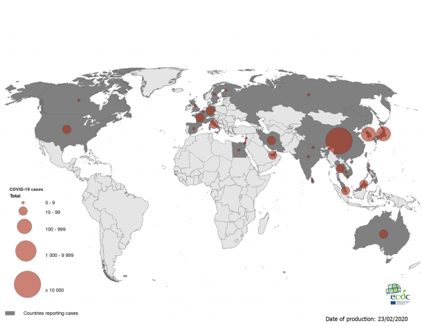 Foto: Distribuţia cazurilor la nivel global (sursă foto: European Center for Disease Prevention and Control (ECDC))