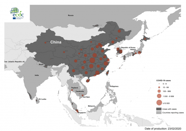 Foto: Distribuţia cazurilor înChina(sursă foto: European Center for Disease Prevention and Control (ECDC))
