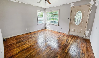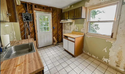 Totuși, casa trebuie renovată pentru că pereții sunt mucegăiți, podele sunt foarte zgâriate, iar veranda trebuie curățată de buruienile care acoperă scările de la intrare, conform Click.