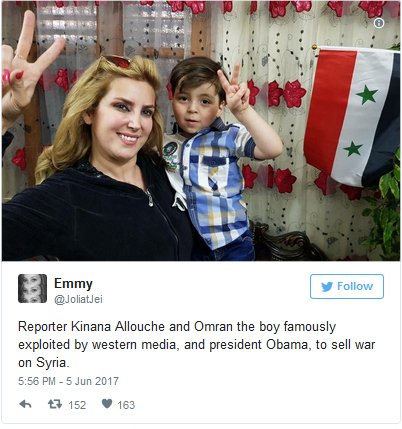 Jurnalista Kinana Allouche, angajata unei televiziuni fidele regimului Bashar al-Assad, a realizat un interviu cu familia lui Omran Daqneesh, postând mai multe fotografii pe Facebook.