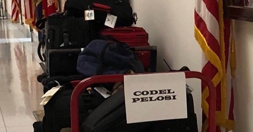 Foto: Căruț plin cu bagaje aparținând democratei Nancy Pelosi (sursă foto: thegatewaypundit.com)