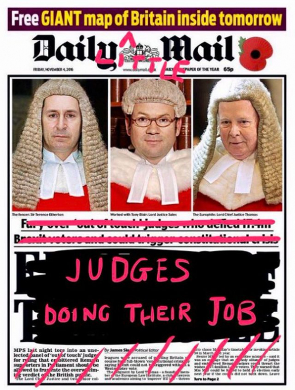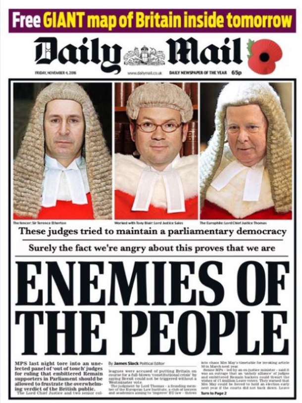 Publicația i-a atacat pe cei trei judecători care au dat decizia numindu-i "inamicii poporului".