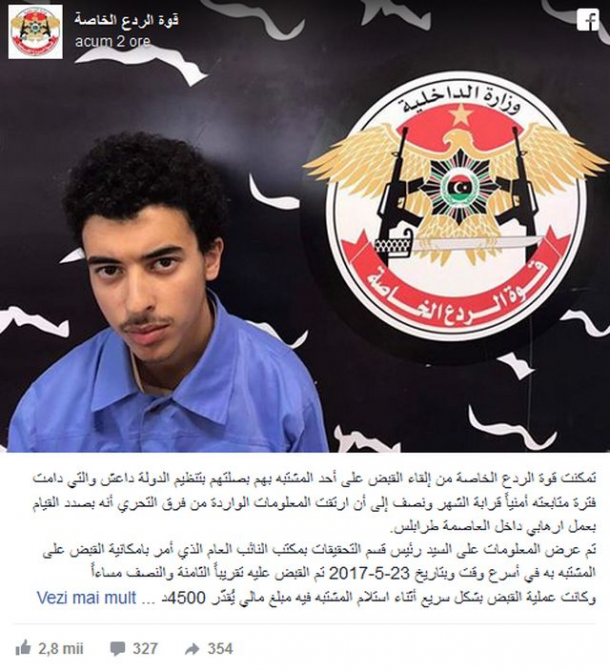 Fratele mai mic și tatăl autorului atentatului de luni seară de la Manchester, au fost arestați în Libia, la Tripoli pentru presupuse legături cu gruparea teroristă Statul Islamic, potrivit RT.