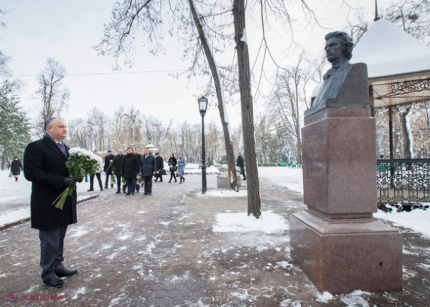 Igor Dodon îl revendică pe Mihai Eminescu: S-a născut moldovean și a plecat din viață în România (FOTO)