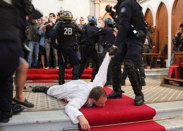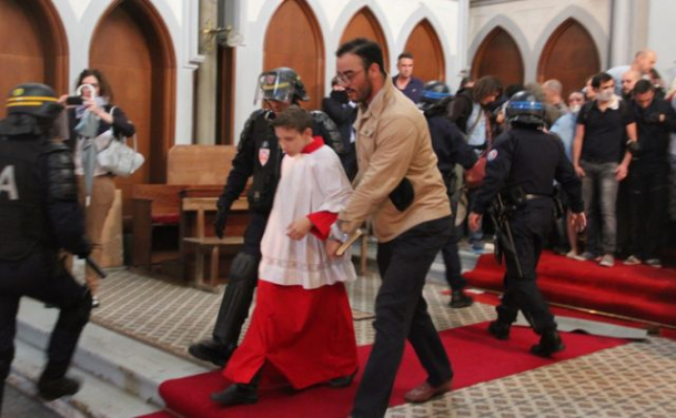 Imagini ȘOCANTE cu preoți de la o biserică din Paris, târâți afară de polițiști